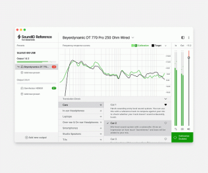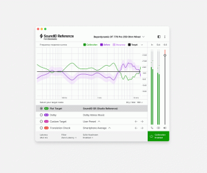 A headphone calibration software delivers consistently accurate studio reference sound on your existing headphones. The software includes presets of more than 280 headphone calibration profiles. With an applied headphone calibration profile the software sets the frequency response target to be completely flat across all audible frequencies. The headphone frequency response target is designed to emulate neutral-sounding speakers. With calibrated headphones, you’ll hear a flat, consistent sound wherever you go.